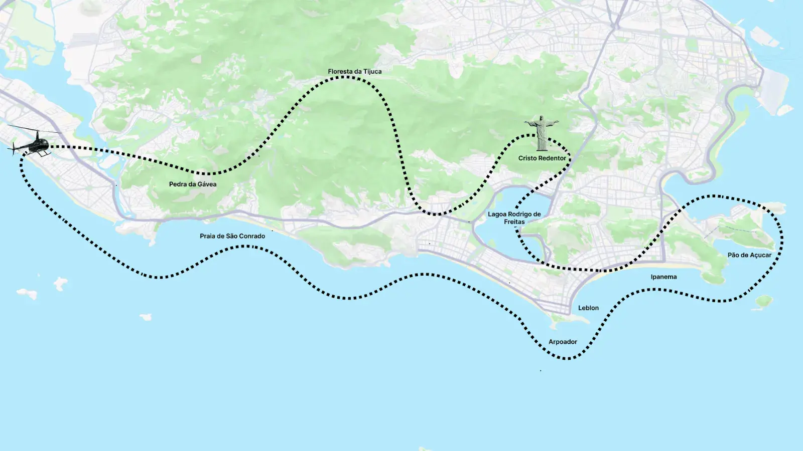 Sinta a adrenalina de um voo sem portas. Este passeio de 30 minutos é a escolha perfeita para fotografia e aventura. Nossos pilotos são treinados para esta operação, garantindo manobras seguras para as melhores fotos e sua total confiança. Você terá vistas desimpedidas e sem reflexos do Cristo Redentor, Pão de Açúcar, Copacabana e Ipanema. Sinta a brisa e a energia do Rio de um ângulo verdadeiramente único.